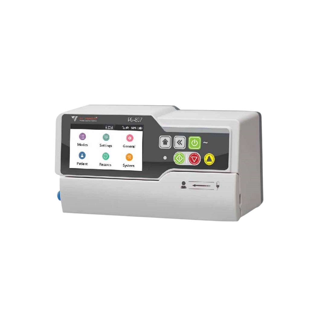La PG 807i es una bomba de infusión volumétrica diseñada para entornos críticos como quirófanos, cuidados intensivos y emergencias. Es un dispositivo médico de alta precisión que utiliza un sistema de movimiento peristáltico lineal para la administración controlada de fluidos y medicamentos.