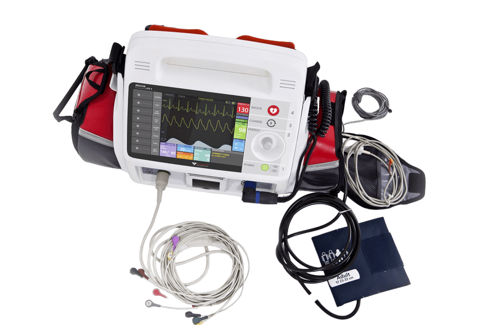 El RESCUE Life 9 es un sistema de desfibrilación profesional avanzado de tecnología italiana, diseñado para el soporte vital avanzado (SVA) en entornos hospitalarios y de urgencias. Su diseño robusto y pantalla de alta resolución lo convierten en una solución completa para la monitorización y el tratamiento de pacientes críticos.